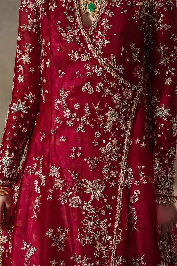 - Organza dupatta with four-sided sequin patti, embroidered pallu featuring chaand bali motifs, and lace finishes.